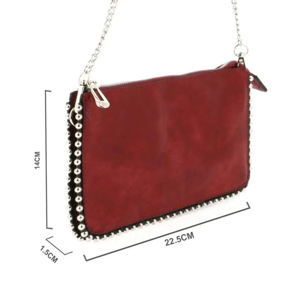 Women's burgundy ball chain clutch