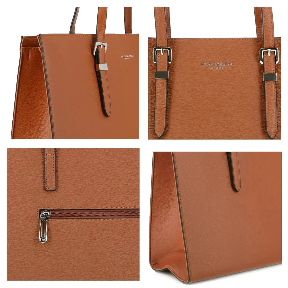 Elegant tote bag in grained faux leather, ideal for work, school or outings. Large interior space, 13" PC compartment, organized pockets.