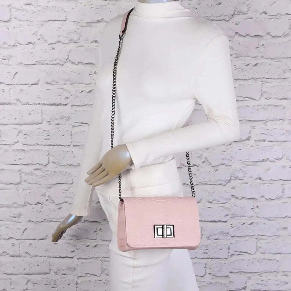 Women's shoulder bag with pink python chain