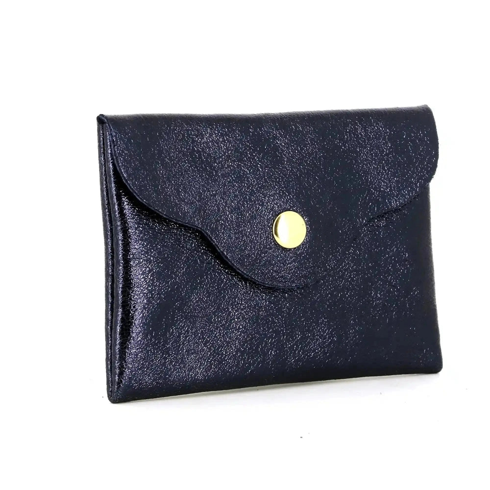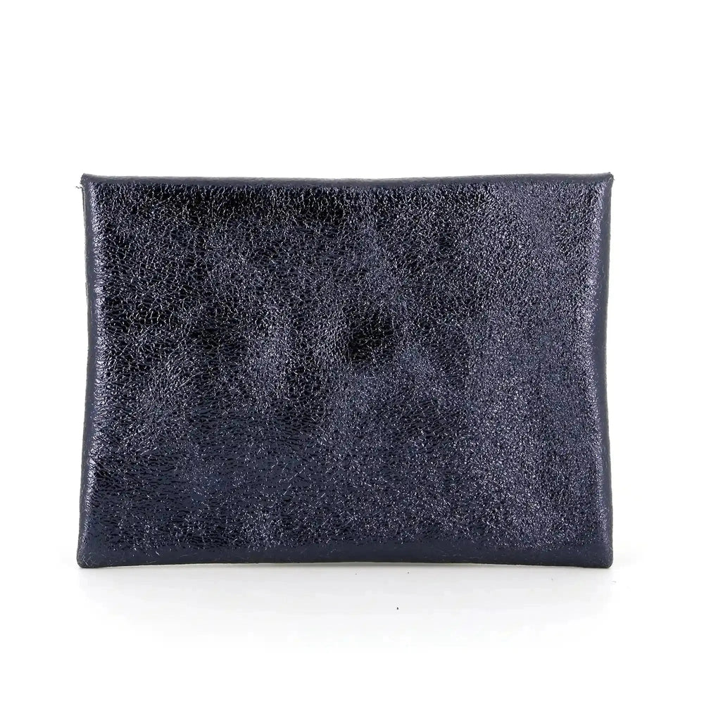Women's ultra-thin iridescent leather purse in navy blue