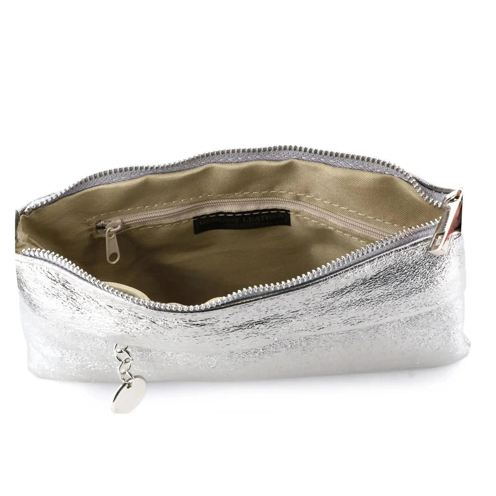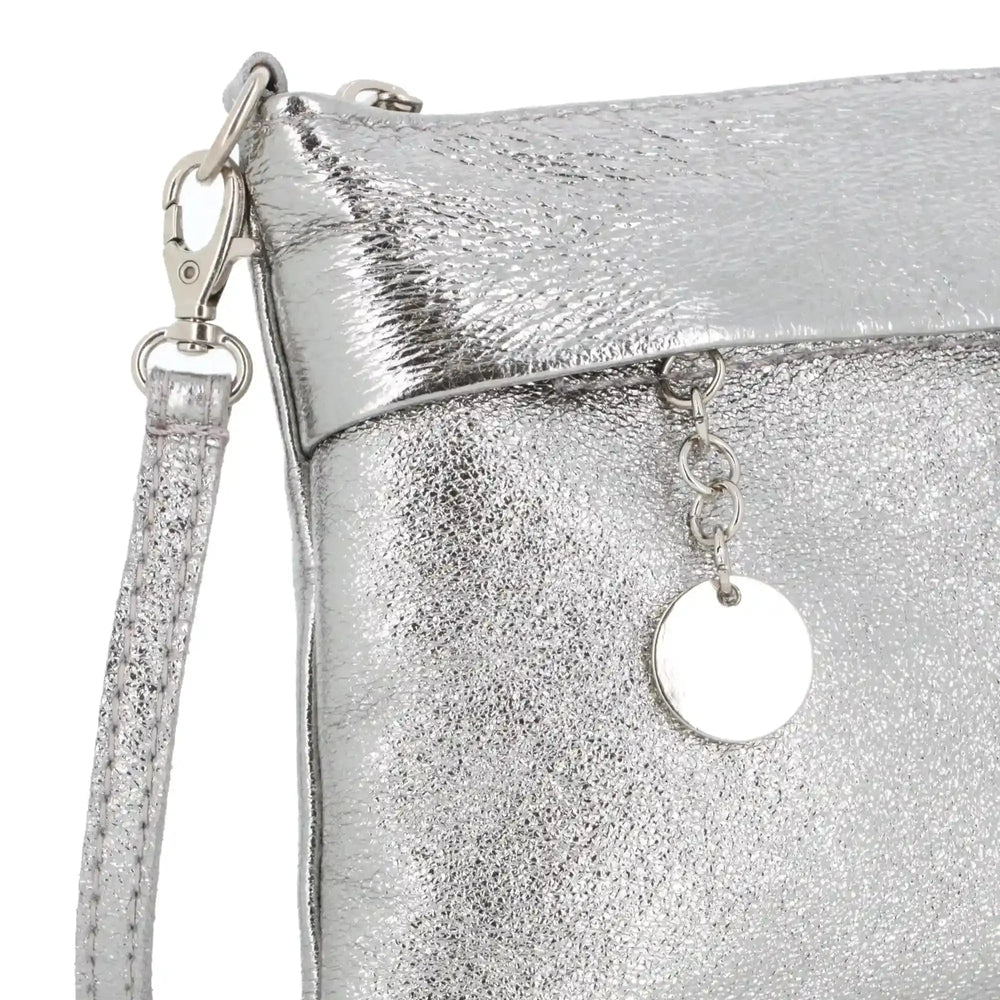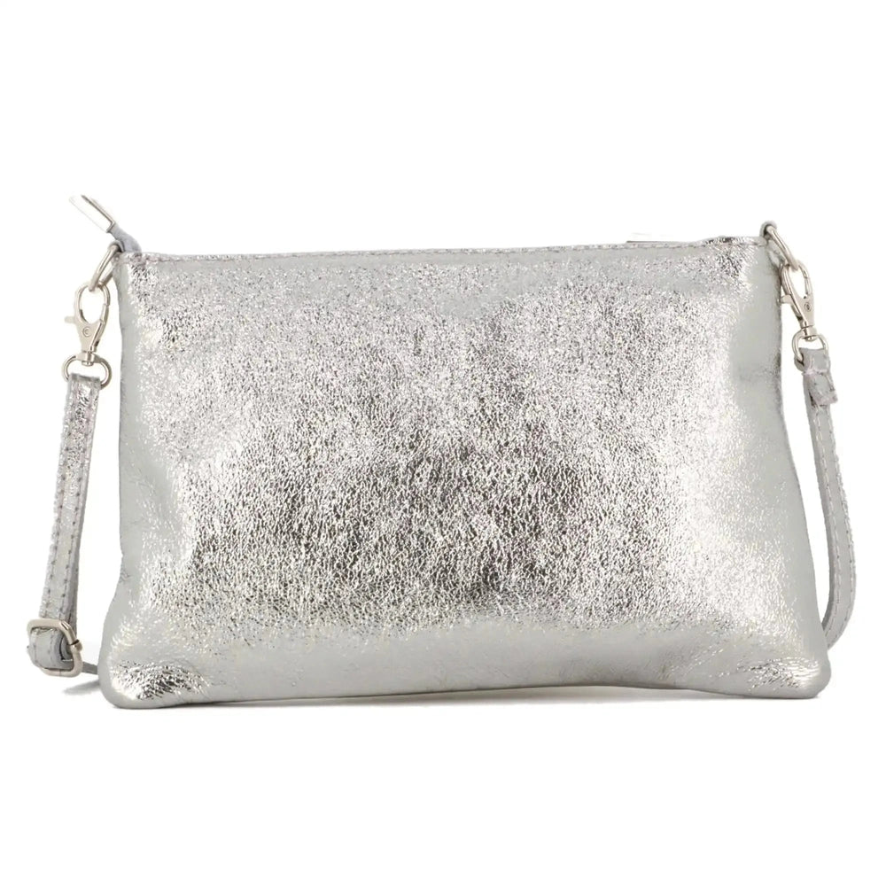 Fall in love with our small, flat clutch bag with a shoulder strap and strap. You'll love its iridescent, glittery genuine leather and simple, elegant design. This bag is the perfect accessory for parties, evenings, ceremonies, weddings, or even for your weekend outings with friends.