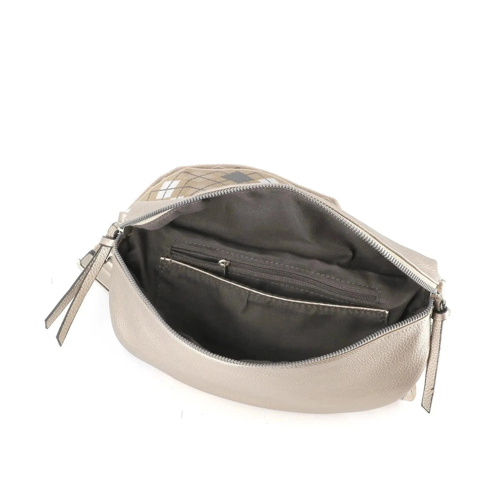 artistic and modern style shoulder fanny pack This faux leather fanny pack combines practicality and aesthetics with a rounded, spacious and elegant design. Perfect for carrying your essentials, it offers optimal comfort and a unique touch to your casual outfits. Design and finishes: Crafted from grained faux leather for a refined, textured look. Wide, adjustable shoulder strap for comfortable, personalized wear. Silver metal details adding a classic and elegant touch. Organization and practicality: Spacious main compartment: Ideal for smartphone, small wallet , makeup, keys, etc. Additional storage: Two interior pockets for your valuables and a zippered pocket on the back for quick access.