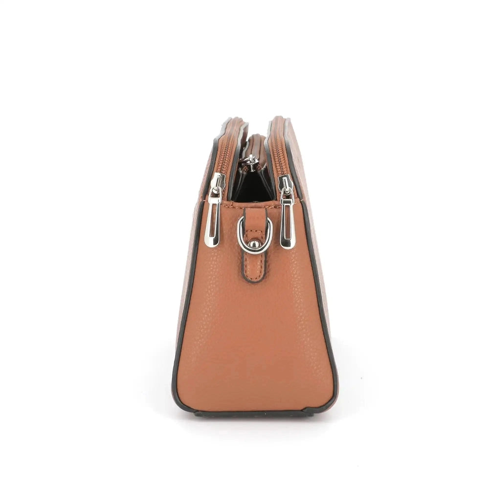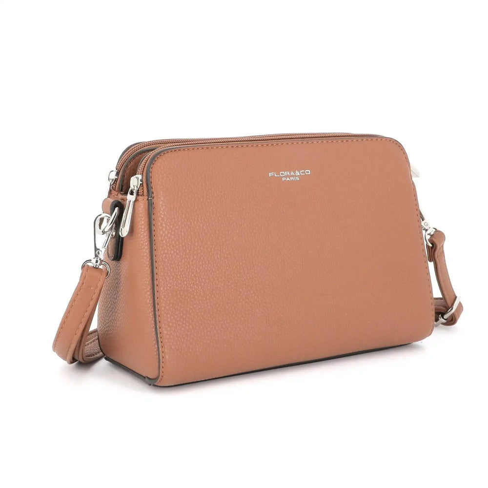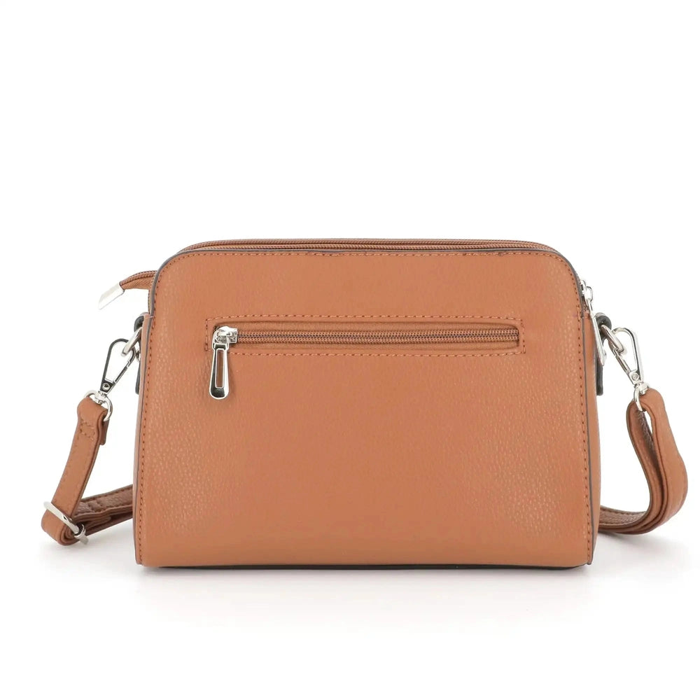 Sac bandoulière trapèze en similicuir grainé, design moderne avec 3 compartiments zippés. Dimensions : 24x17x11 cm. 2 poches intérieures, 1 poche zippée à l'arrière, bandoulière ajustable.