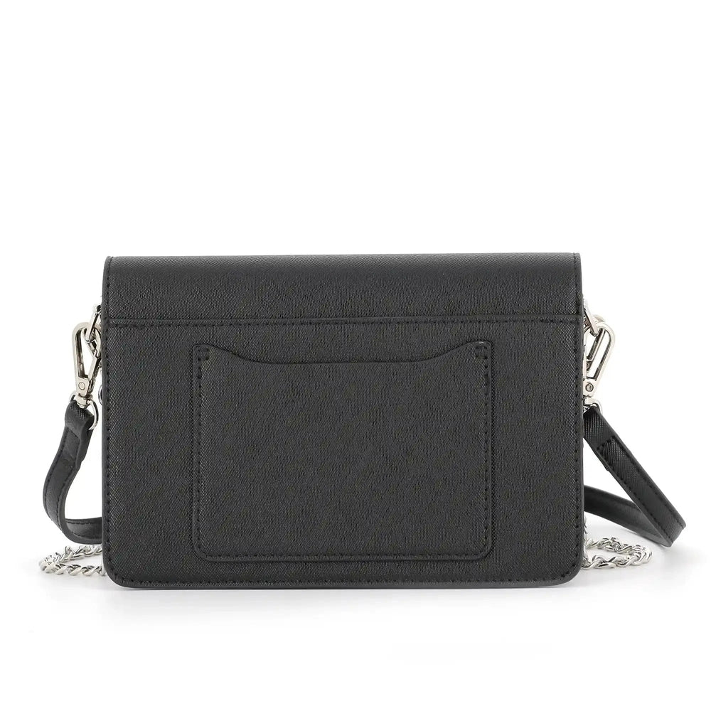 Rangements : 2 compartiments principaux pour smartphone, porte-monnaie, maquillage et clés. 1 pochette latérale intérieure pour objets de valeur et 1 poche plaquée au dos pour un accès rapide.
