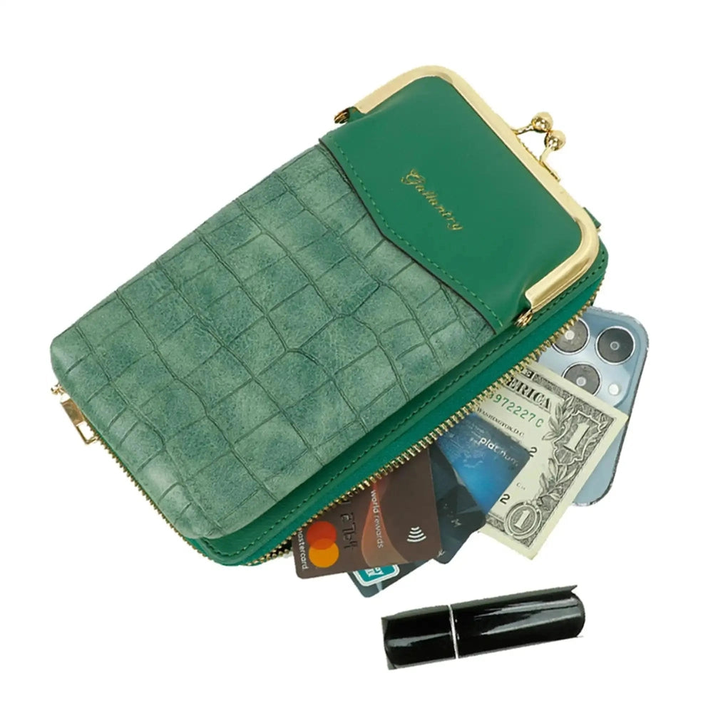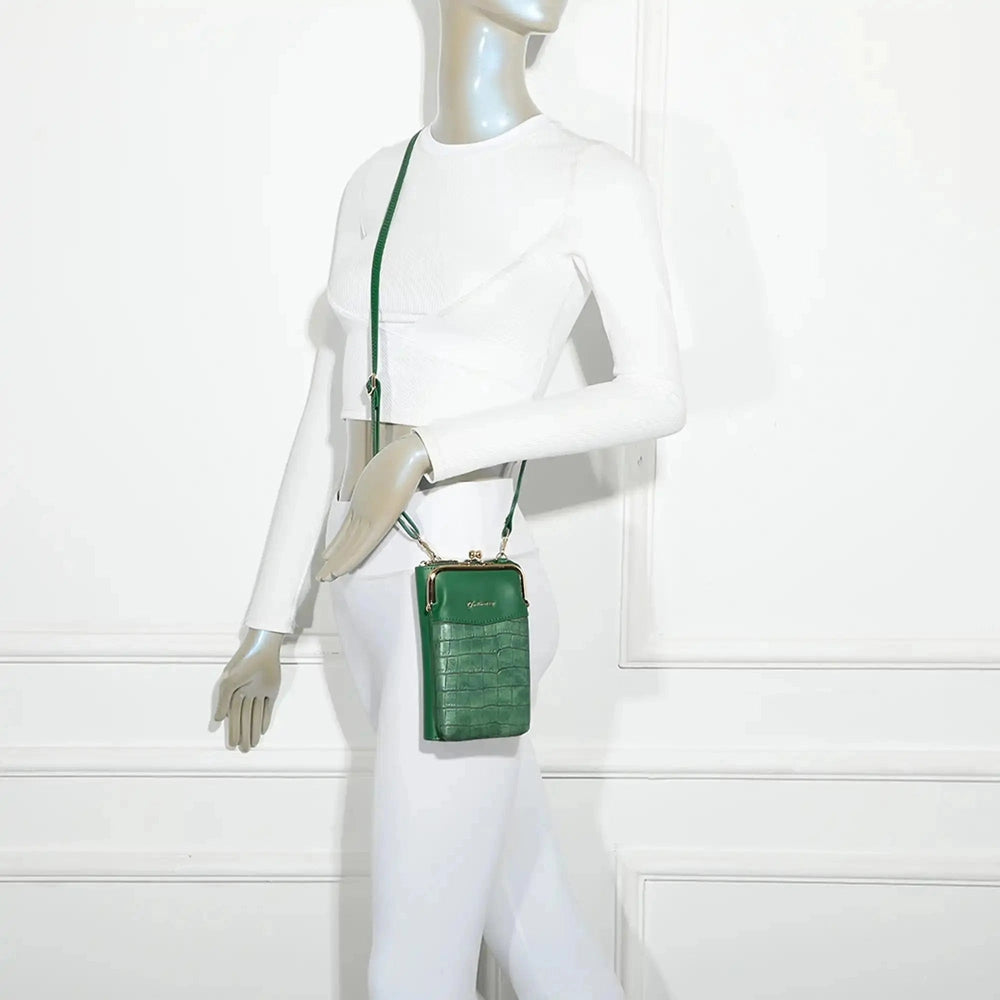 Pochette téléphone femme croco tout-en-un vert