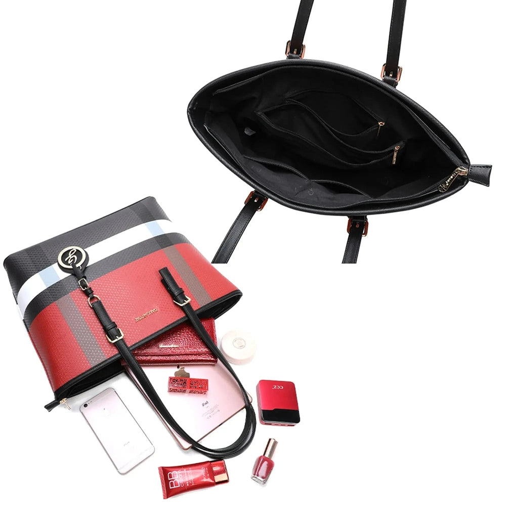 Ce sac à main au style rayé, chic et intemporel, vous séduira par son design élégant et sa matière en similicuir de qualité. Son fond semi-rigide, protégé par 4 picots en métal, offre une excellente stabilité tout en évitant d'abîmer le sac. Avec un volume intérieur spacieux, il peut contenir un ordinateur portable 15,6 pouces (32 x 24 cm), un livre, un cahier, une trousse de maquillage, une grande tablette, un Portefeuille, un classeur A4 et bien plus encore. À la main ou à l'épaule, ce cabas fourre-tout pratique et élégant vous accompagnera partout et conviendra parfaitement à toutes vos tenues, qu'elles soient décontractées ou professionnelles. Idéal pour le quotidien, que ce soit en ville, au travail, au lycée, à l'université, en shopping ou au bureau.