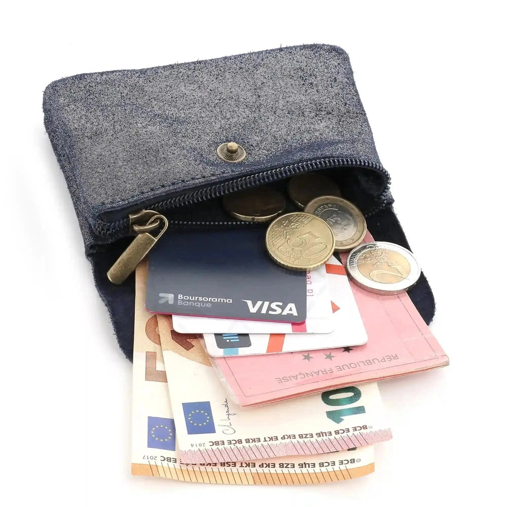 Porte-monnaie femme cuir daim irisé 044 bleu marine