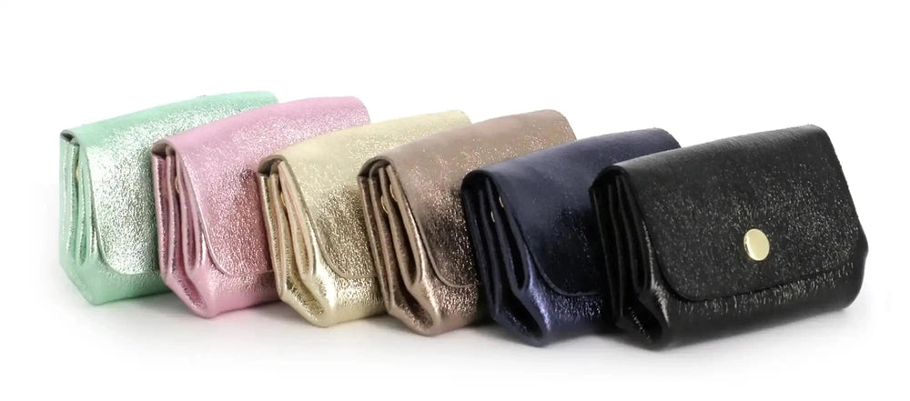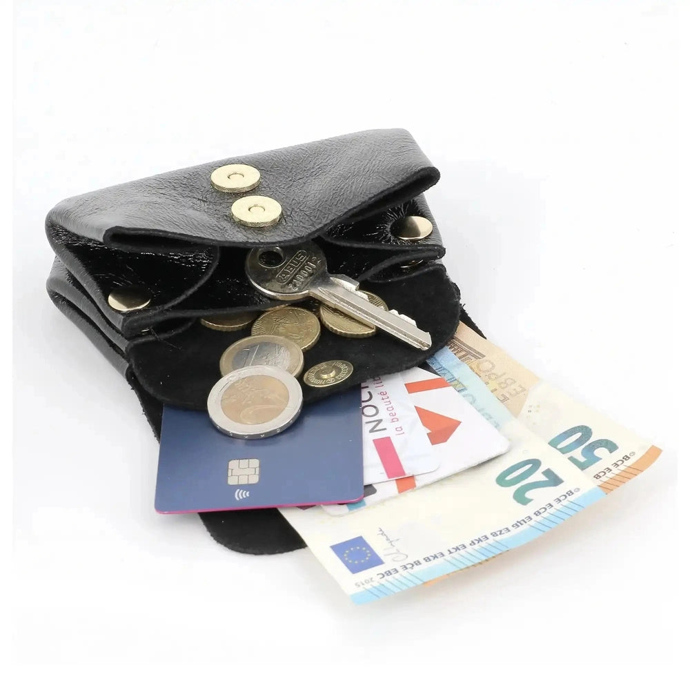 Porte-monnaie cartes en cuir véritable "Made in Italy", compact et élégant. Double fermeture magnétique sécurisée, 3 compartiments pratiques doublés en cuir suédé. Style et qualité.