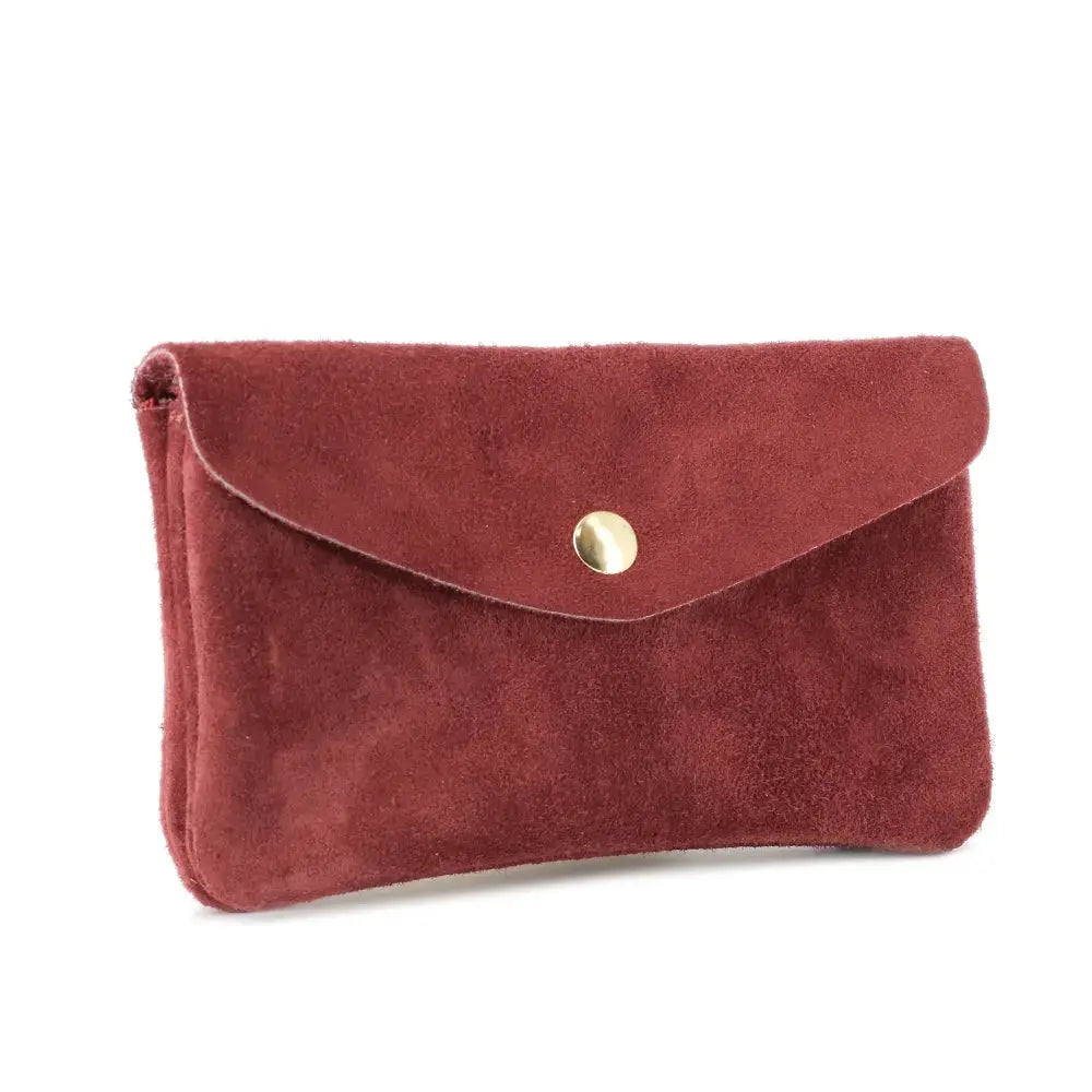 Porte-monnaie portefeuille mi-long suède Bordeaux