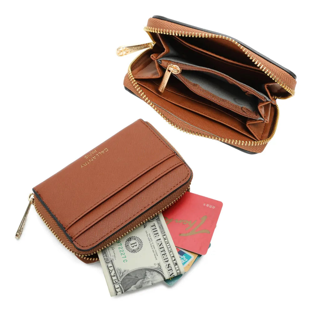 - Intérieure : 1 poche zippée pour la monnaie, avec de multiples emplacements pour cartes et billets.
