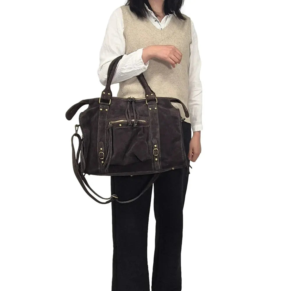 Notre It-bag MISS STORM se réinvente dans une version en suédine ! Un look irrésistible et une belle contenance au format A4, idéal pour les étudiantes et les femmes actives.