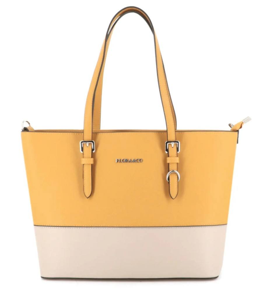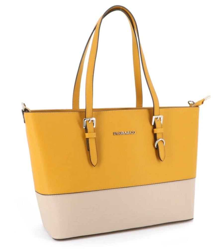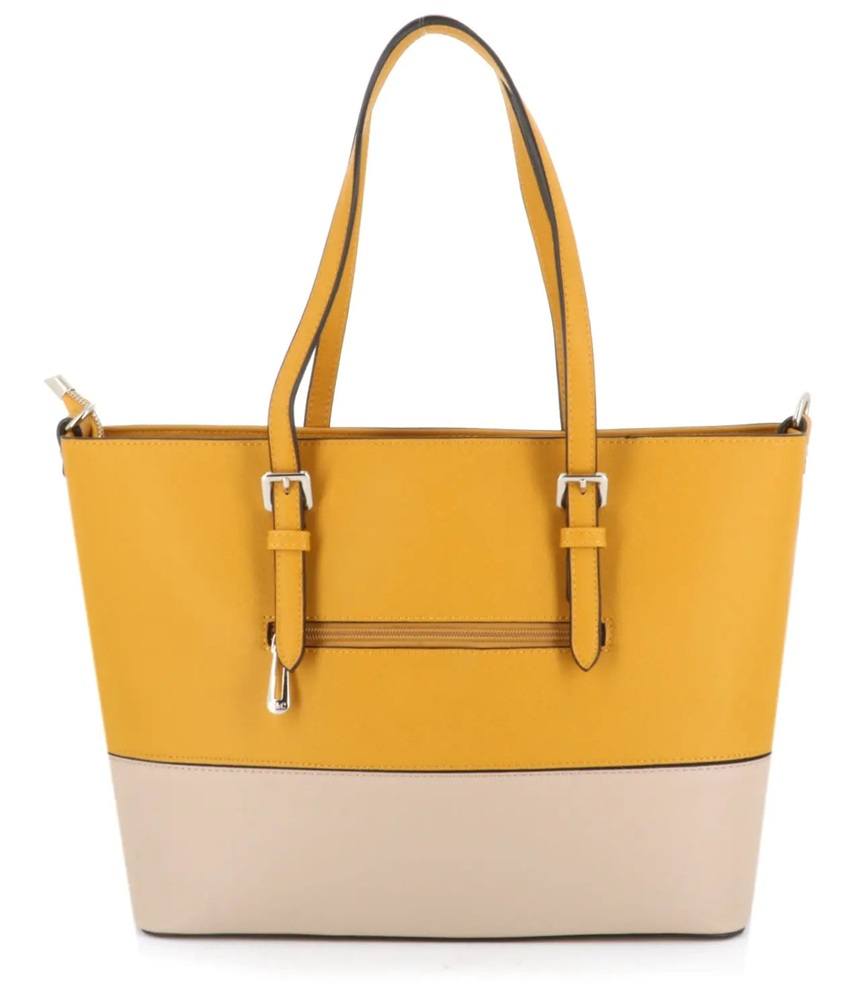Sac cabas femme bicolore format a4 moutarde beige